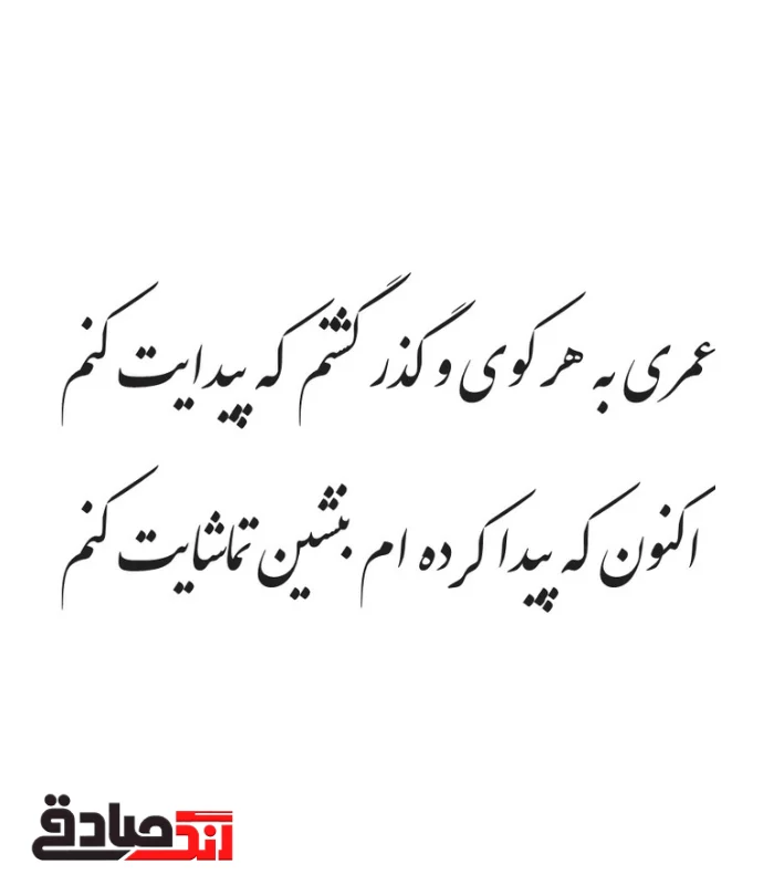 ” عمری به هر کوی و گذر گشتم که پیدایت کنم اکنون که پیدا کرده ام بنشین تماشایت کنم ”