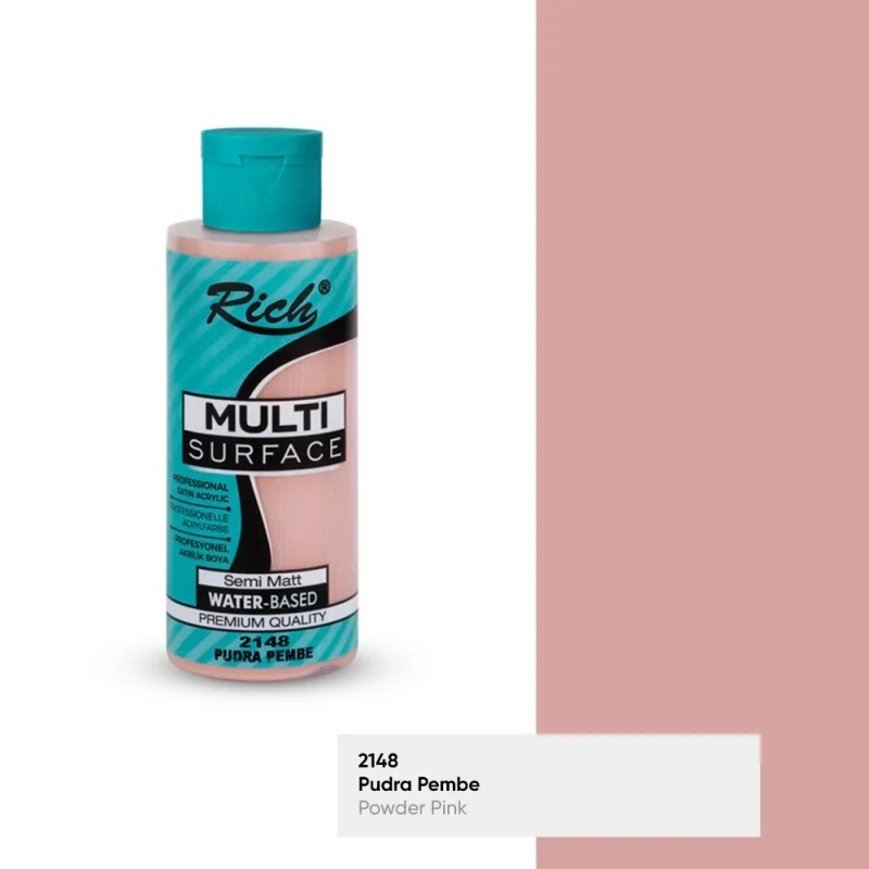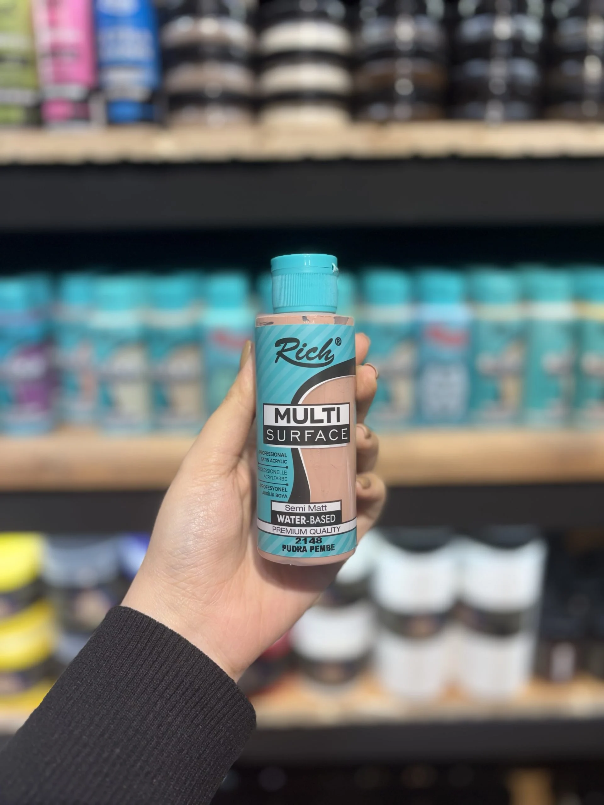 مولتی سرفیس ریچ قابل استفاده برای تمام سطوح فلزی، پلاستیکی، شیشه، چوب، سرامیک، پلی استر، پارچه، چرم و سایر سطوح است و این رنگ ها در برابر حرارت مقاوم هستند