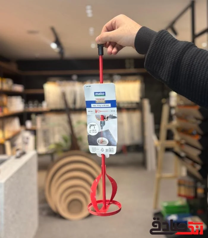 به شما کمک می کند مواد و متریال از جنس مایع و نیمه مایع را خوب هم زده و مخلوط کنید. مخلوط کن رنگ ماکو برای مخلوط کردن رنگ، سیمان، دوغاب و موادی از این جنس به کار می رود. فلزی و در سه سایز برای مقدار 5 و 10 و 20 کیلویی موجود است.
